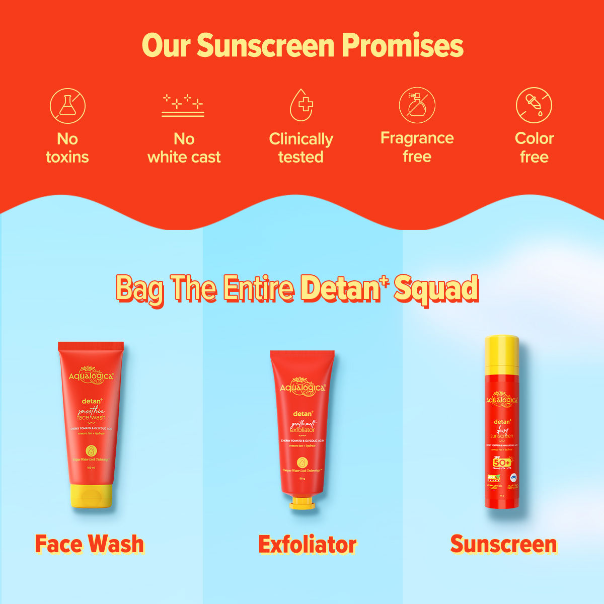 Aqualogica Detan+ Dewy Lightweight Sunscreen Gel SPF 50+ PA++++ - Normal & Dry Skin (50g)
