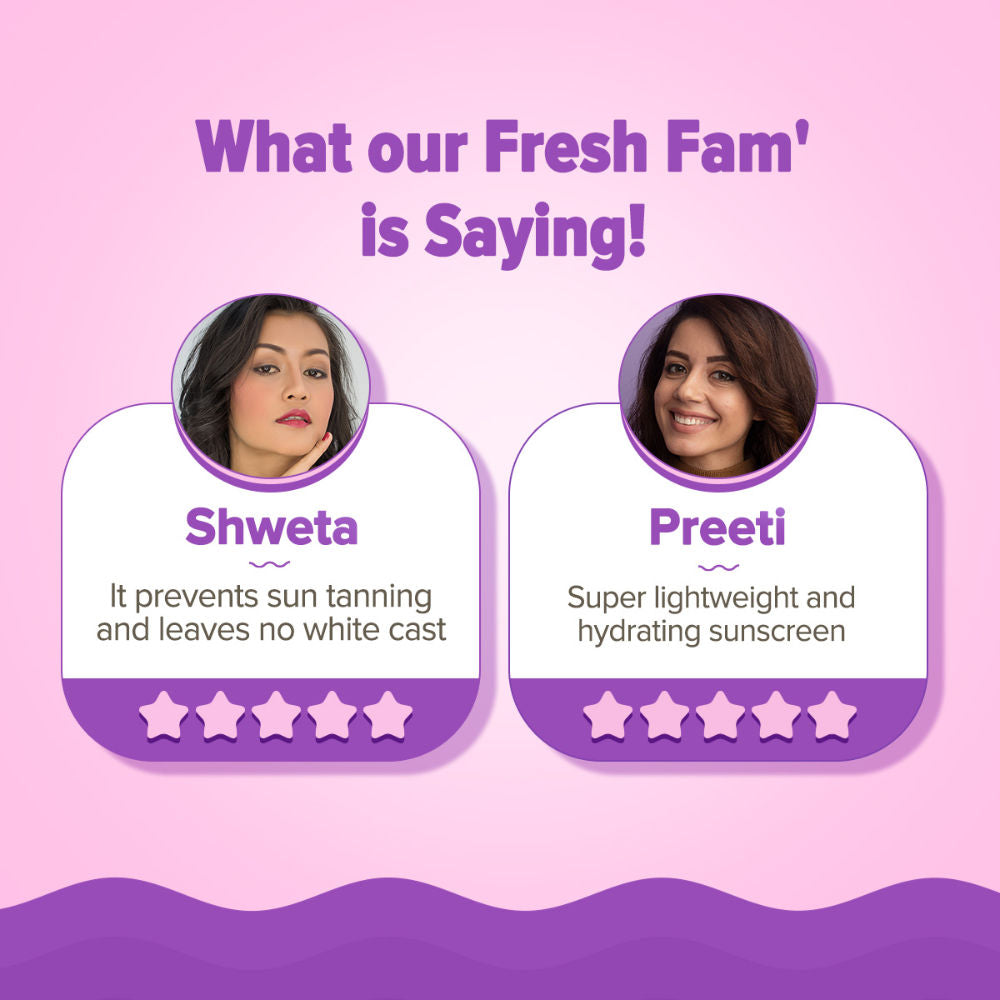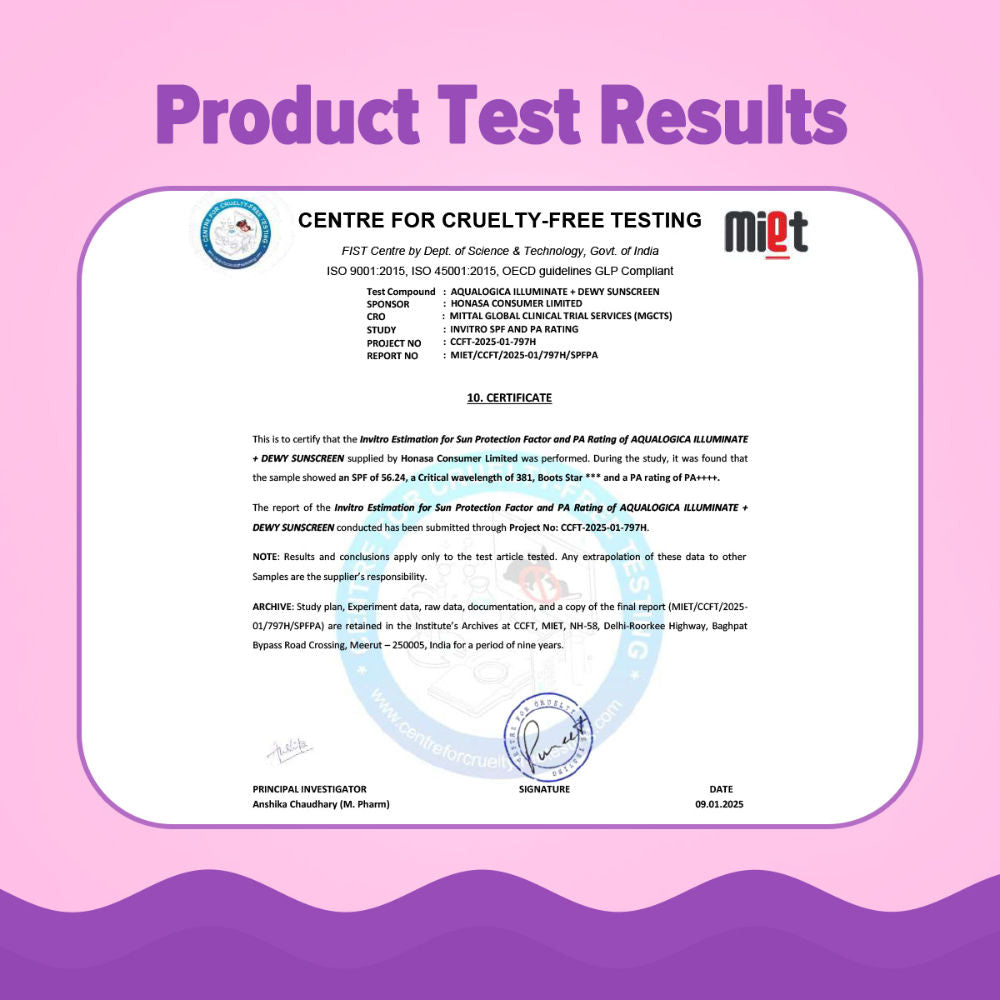Achieve a luminous glow and broad-spectrum sun protection with Aqualogica Illuminate+ Dewy Lightweight Sunscreen Gel SPF 50+ PA++++ (50g). This non-sticky, dewy-finish sunscreen is suitable for all skin types, offering superior defense against UVA/UVB rays and blue light, while leaving your skin visibly brighter and hydrated.