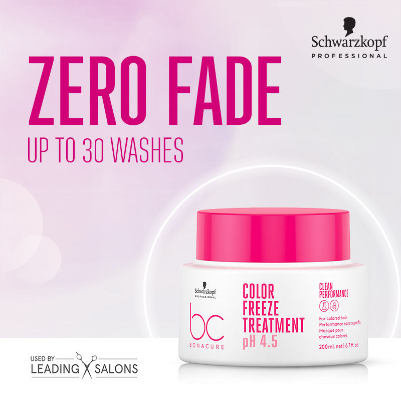 Intensify and prolong your hair color's vibrancy with Schwarzkopf Professional Bonacure Color Freeze Treatment (200ml). This rich mask is formulated with pH 4.5 Balancer Technology to deeply nourish, seal the color pigments, and protect against fading, leaving color-treated hair soft, shiny, and brilliantly long-lasting.