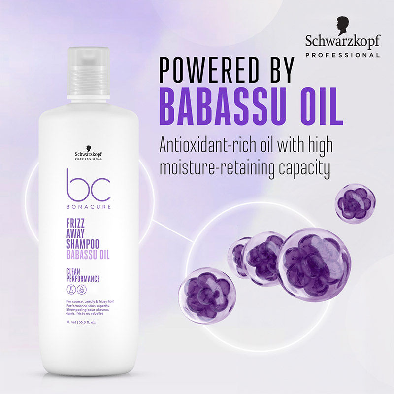 Tame stubborn frizz and achieve salon-smooth hair with Schwarzkopf Professional Bonacure Frizz Away Shampoo (1000ml). This large-size shampoo, enriched with Babassu Oil, gently cleanses, provides intense hydration, and offers long-lasting frizz control for unruly, coarse hair. Experience beautifully disciplined, shiny, and manageable hair with a professional finish.