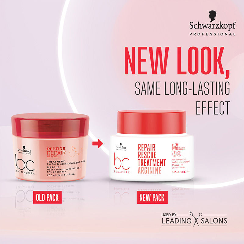 Intensively repair and nourish damaged hair with Schwarzkopf Professional Bonacure Repair Rescue Treatment (200ml). This advanced hair mask, enriched with Arginine and Vegan Keratin, deeply reconstructs hair from within, reducing breakage, restoring elasticity, and leaving it soft, strong, and full of healthy shine.