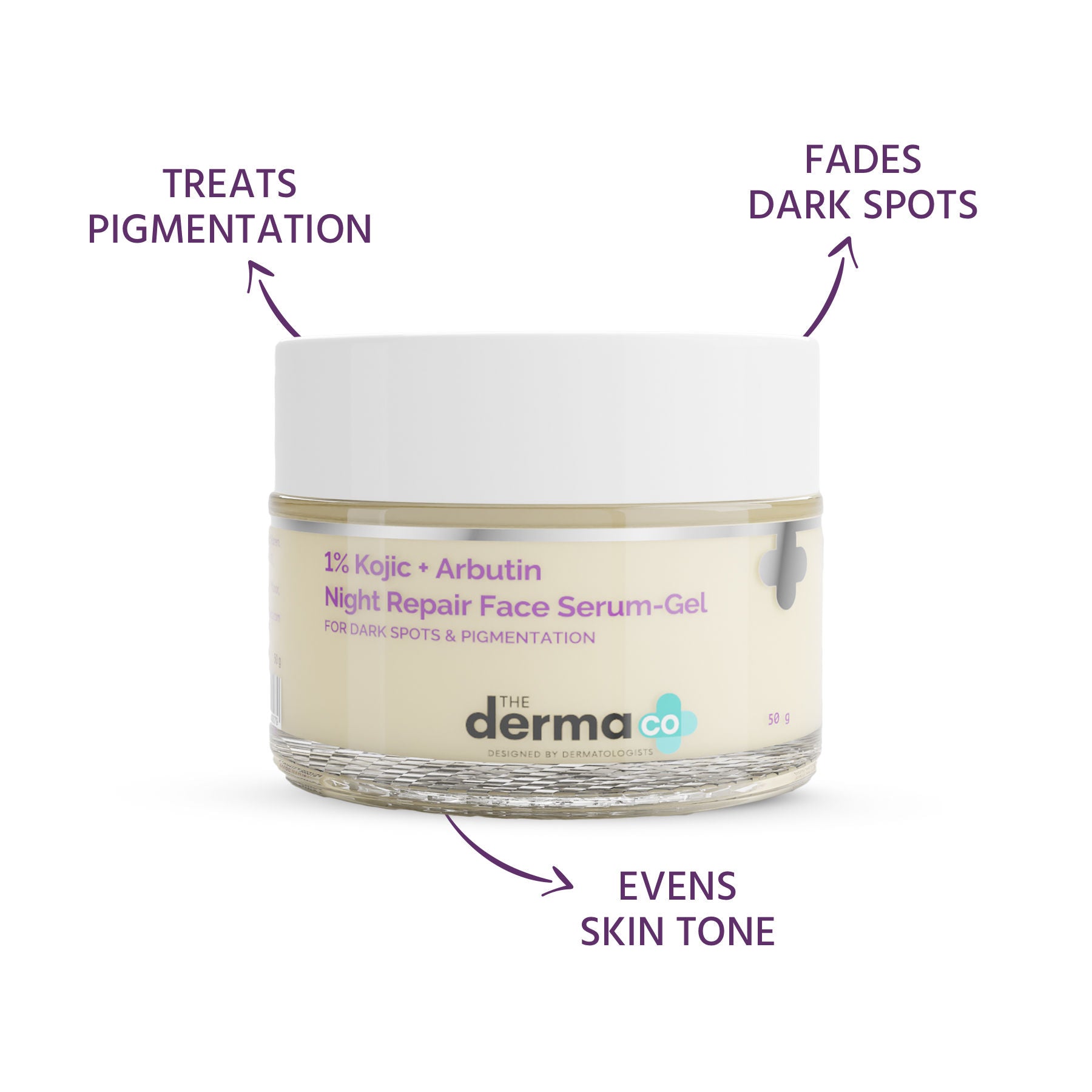 The Derma Co 1% Kojic + Arbutin Night Repair Serum-Gel (50g) - Dark Spot & Pigmentation Corrector